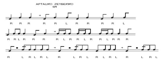 That is, we first play the 3/8 of the version you mention and then the rest 6/8. In the Aptaliko we can use many more strokes and alternative forms and the velocity is faster.