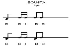 The "Sousta" is another basic rhythm of the Greek traditional music. It is a line dance found on the islands of the Aegean Sea and on Crete (if you play 3 meters of the Syrtos and 1meter of Sousta or vice-versa you can have a very good version). The Sousta is performed this way: